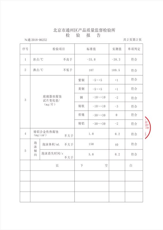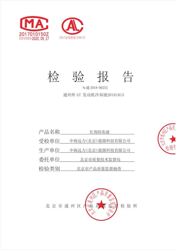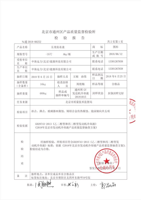 北京質量監督局抽檢長效防凍液報告